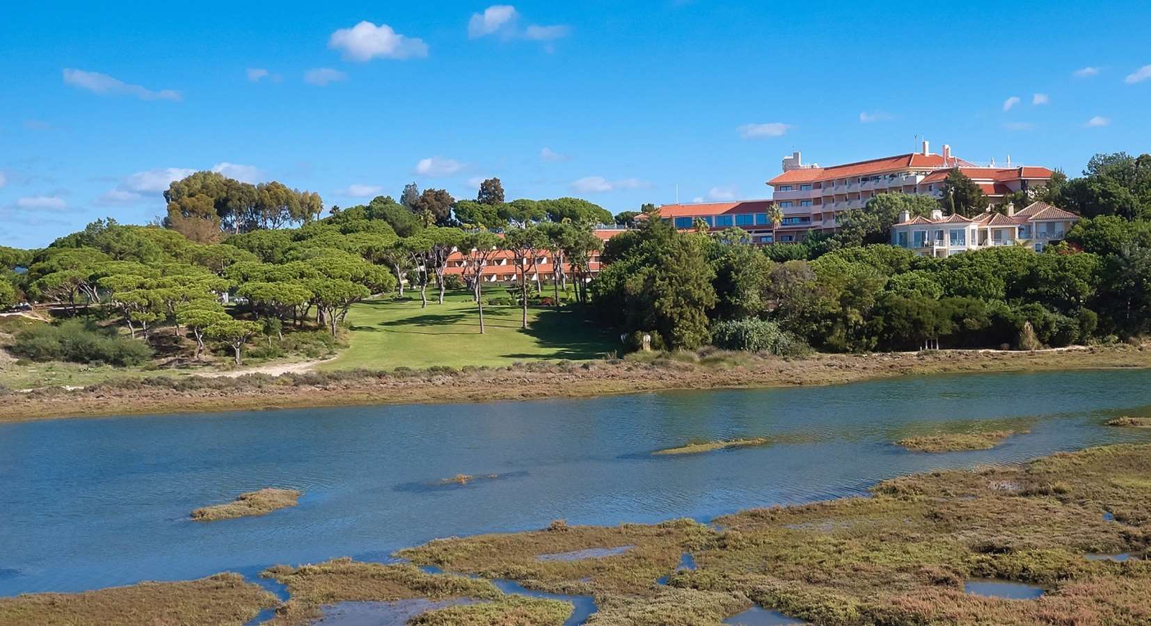 Hotel Quinta do Lago 5* ist ein luxuriöses Hotel an der Algarve in Portugal, direkt am Meer und am Naturpark Ria Formosa. Das Hotel bietet elegante Zimmer und Suiten, Restaurants, Bars, Außenpool und Zugang zum Strand.